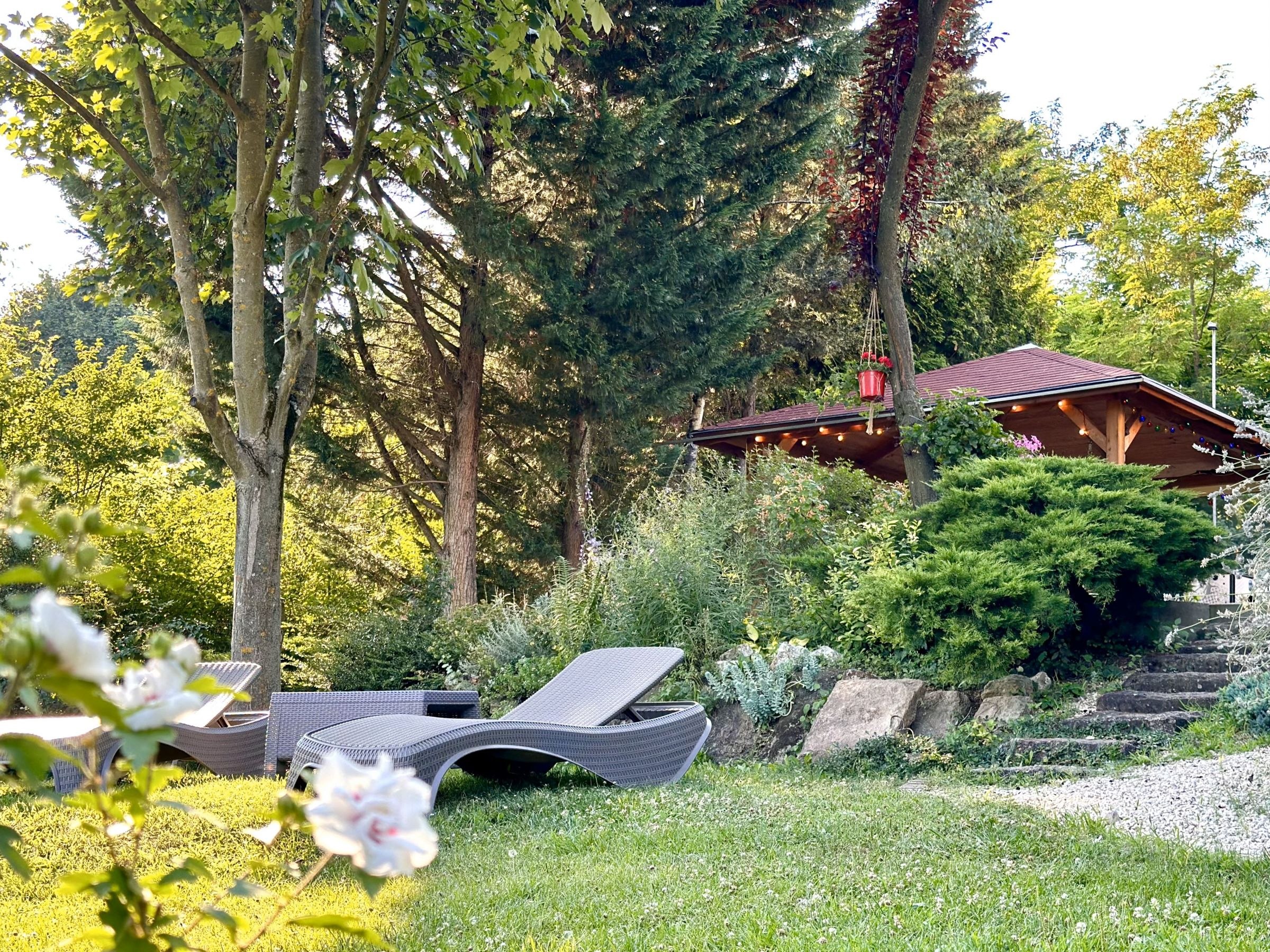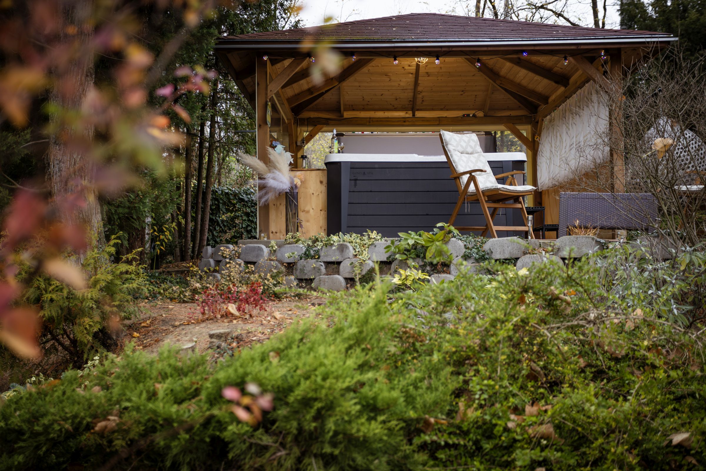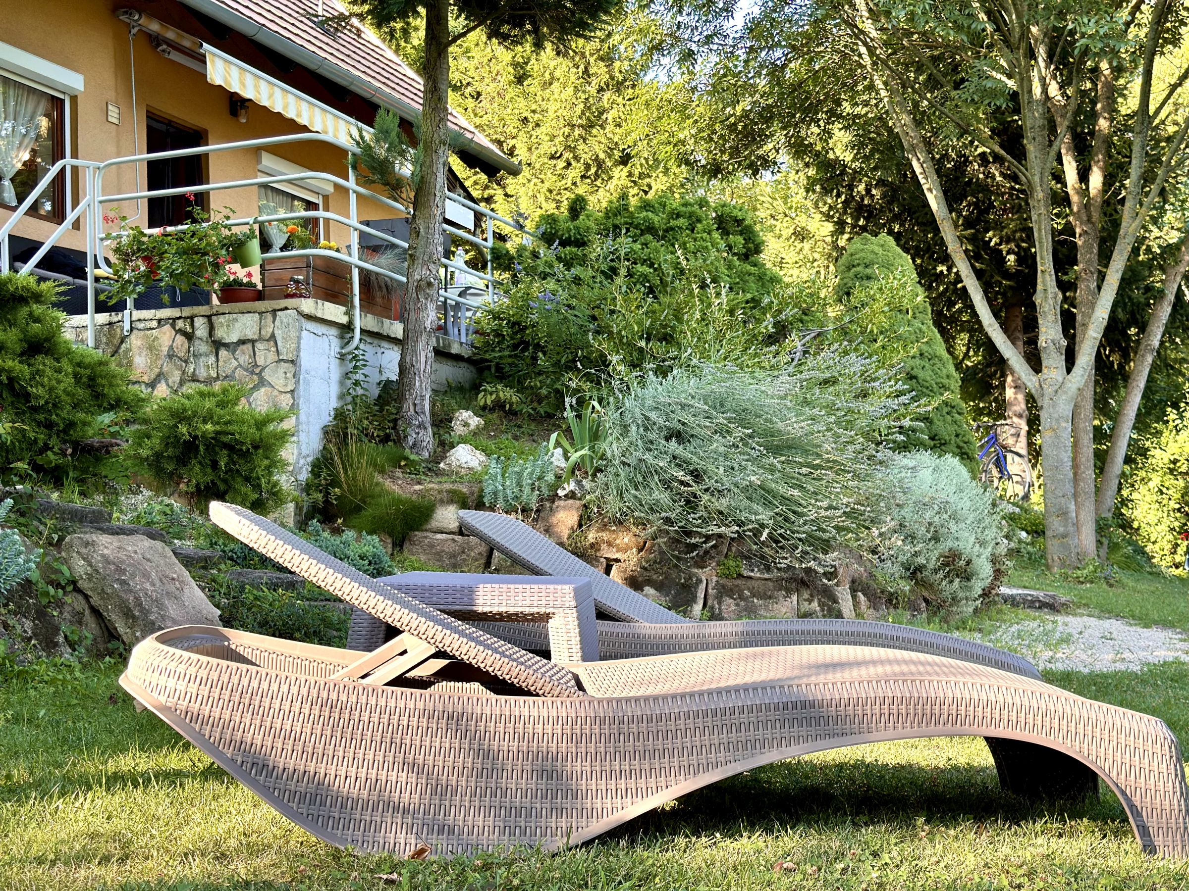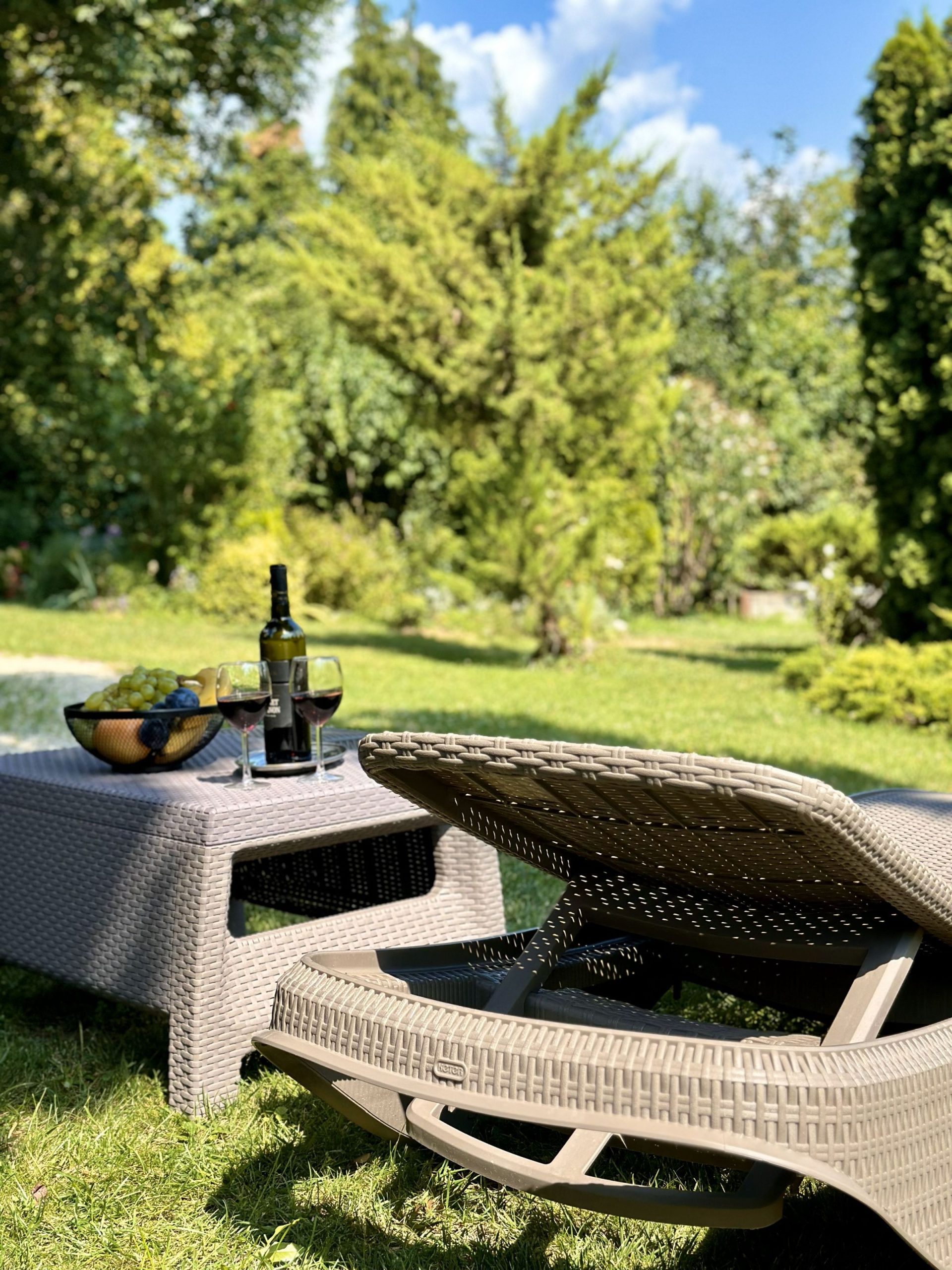 Vendégházunk egy több, mint ezer négyzetméteres, parkosított kert ölelésében fekszik, ahol a jakuzzin és az infraszaunán túl hintaágy, napozóágyak, kerti bútorok várják, hogy kipihend a mindennapokat.