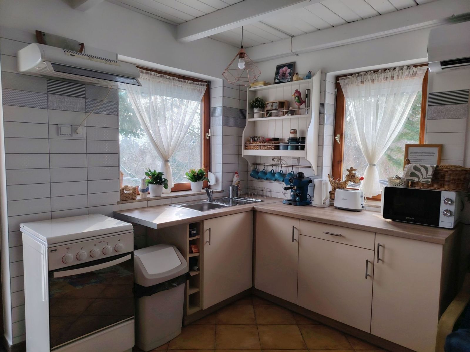 Ha a közös főzőcskézések hívei vagytok és önellátást szeretnétek, akkor a kerti sütögetési, főzési lehetőségeken kívül teljesen felszerelt konyha vár, ahol nemcsak a szükséges kellékek, eszközök, műszaki cikkek állnak rendelkezésre, hanem kávét, teát, alapfűszereket is találsz. Ha viszont arra vágytok, hogy a reggeli is készen várjon, partnerünk – rendelésre – egy egész kosárnyi friss, termelői finomságot szállít házhoz nektek reggelente. Ébredés után csak asztalhoz kell ülni, akár a házban, az ebédlőben, akár a napsütötte teraszon és finom falatokkal megkezdeni nálunk egy csodálatos napot…